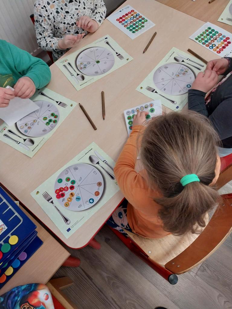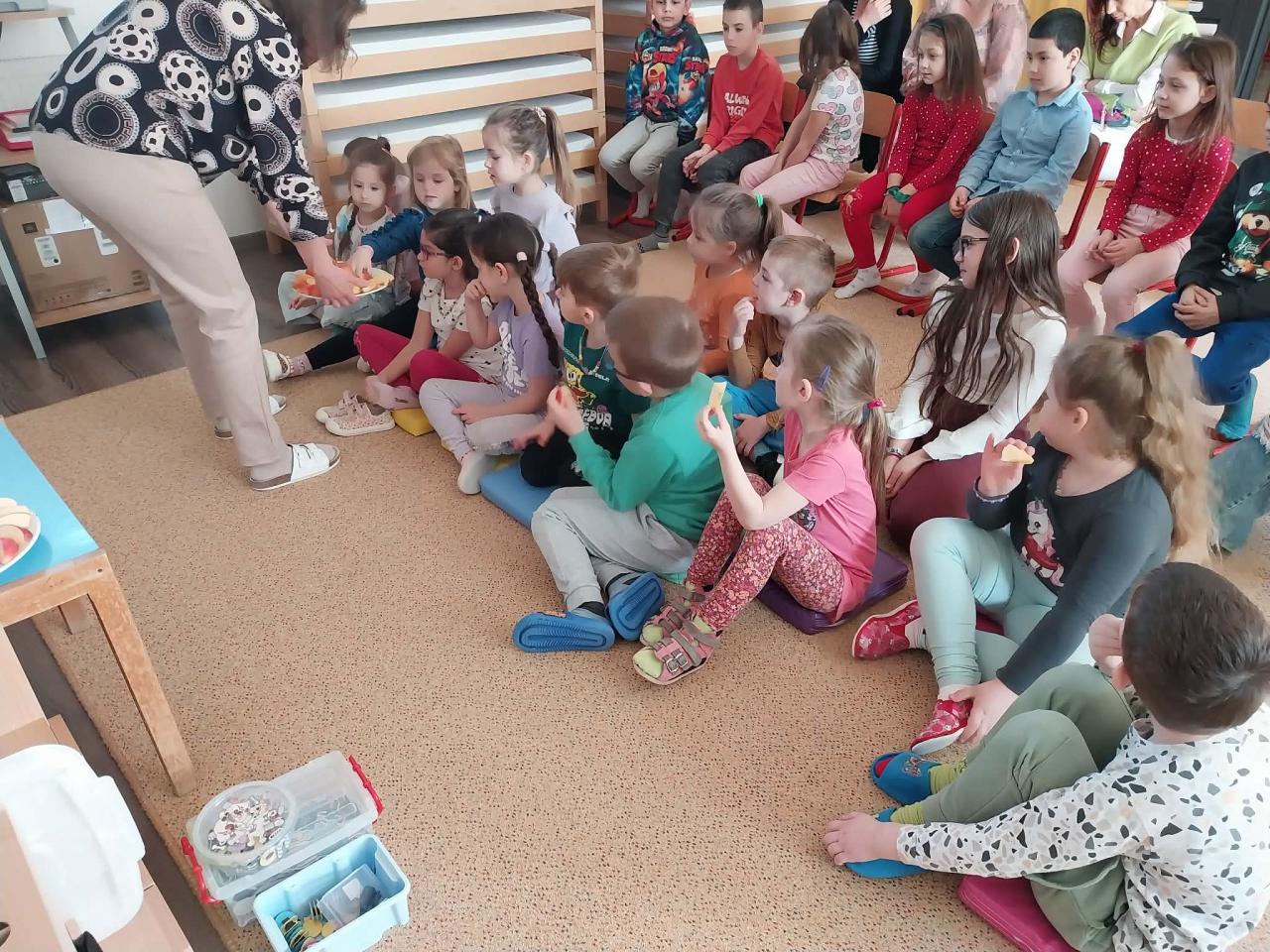 Zdravý tanier, dodávateľom firmy Plantex. Pani učiteľka pomocou potravinovej pyramídy vysvetlila, že základ stravy by mali tvoriť ovocie, zelenina , celozrnné výrobky a voda. Pripravené taniere s jablkami si deti vychutnávali a určovali chuť jabĺk. Nápady na zlepšenie vlastného jedálnička deti realizovali v papierovej forme na pracovnom liste pri stoloch. Uskutočnila sa ochutnávka troch druhov ovocných štiav. Deťom sa aktivita páčila, odnášajú si nové poznatky o zdravom stravovaní.